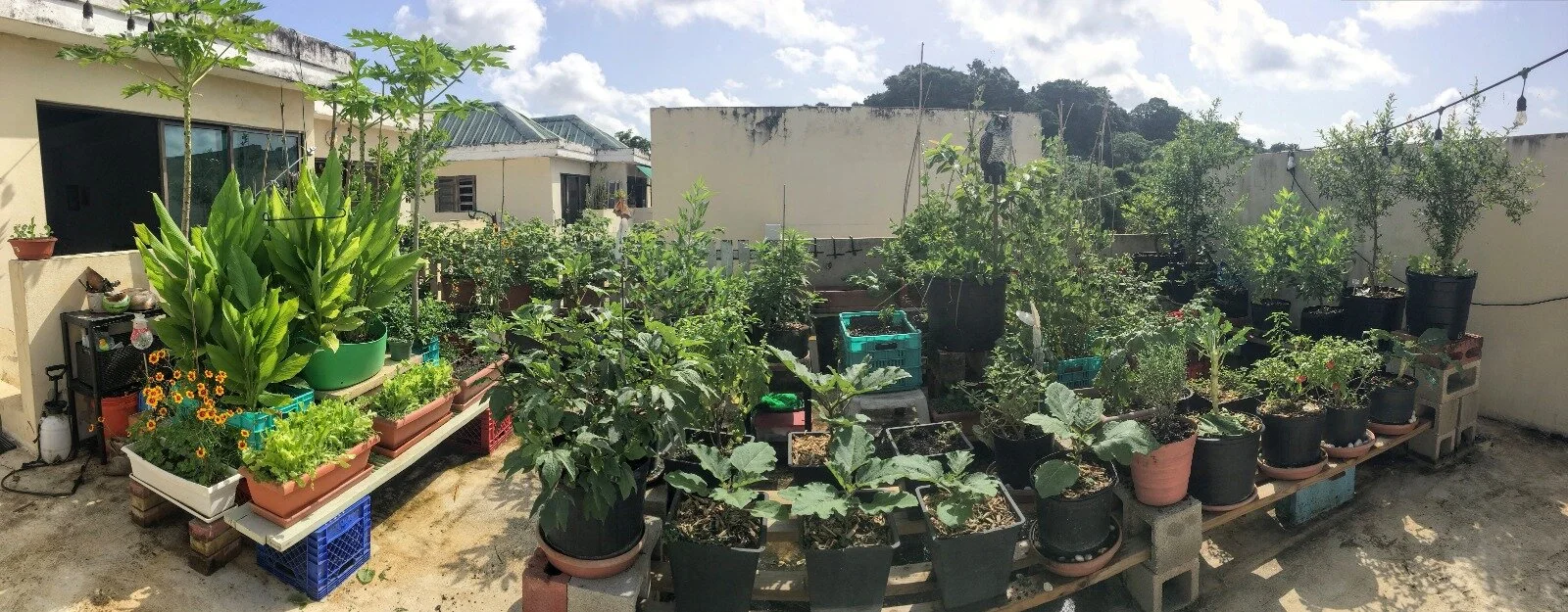 “Con este huerto llevo aproximadamente 4 años, pero me atrevo a decir que llevo teniendo huertos caseros hace unos 13 a 15 años. Todos caseros, todos en tiestos.” Pedrito vive en el penthouse de un complejo de walkups, así que tiene acceso al techo donde tiene su huerto. Justo antes de Cuarentena, la administración decidió pintar el edificio, por lo que le pidieron que tenía que recoger todos los tiestos; la pintura se detuvo pero Pedrito anyway sembró algunas cositas.