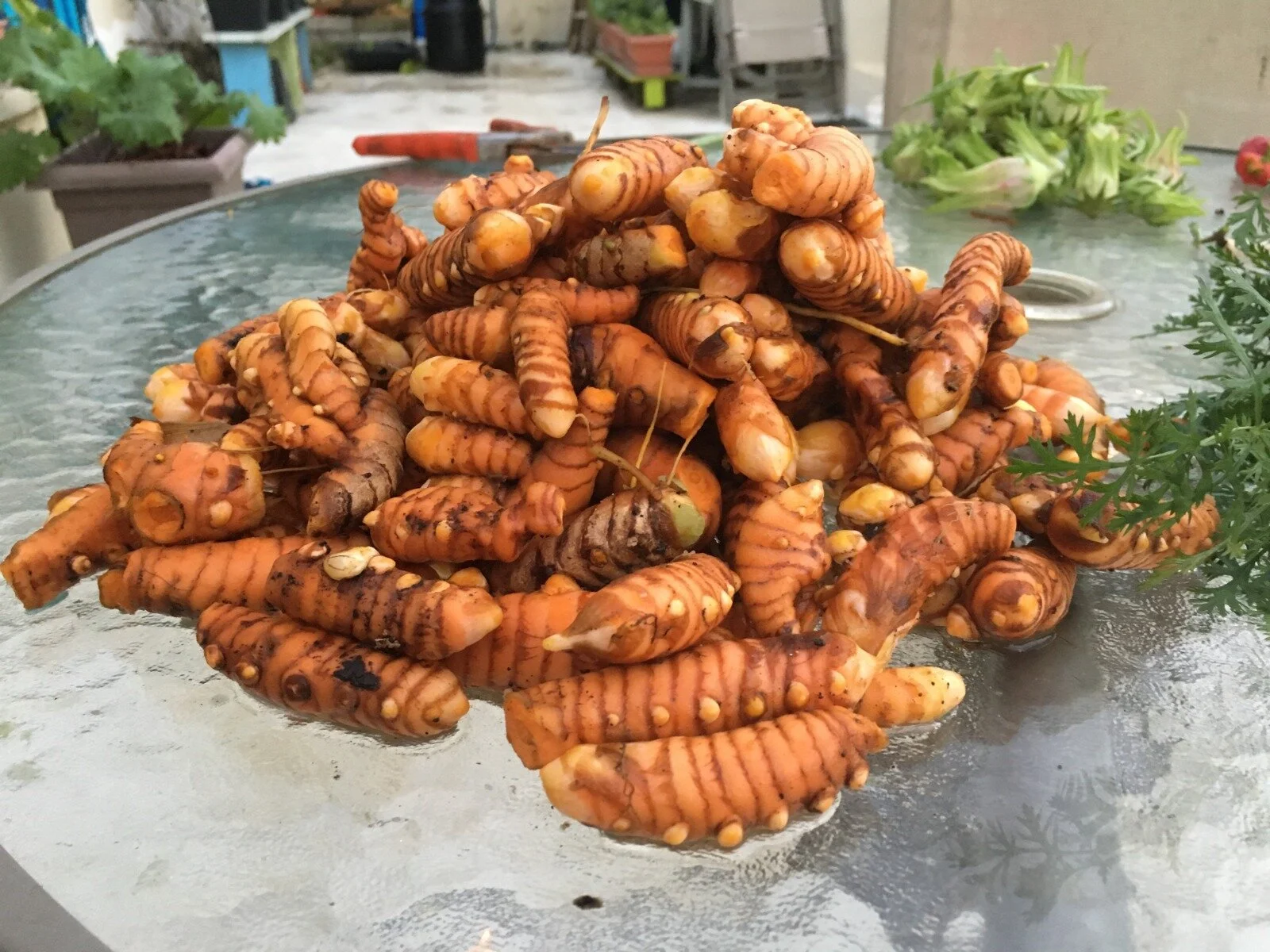 Cosecha de cúrcuma. La cúrcuma al igual que el jengibre, puedes reproducirla de la que compras en el supermercado.