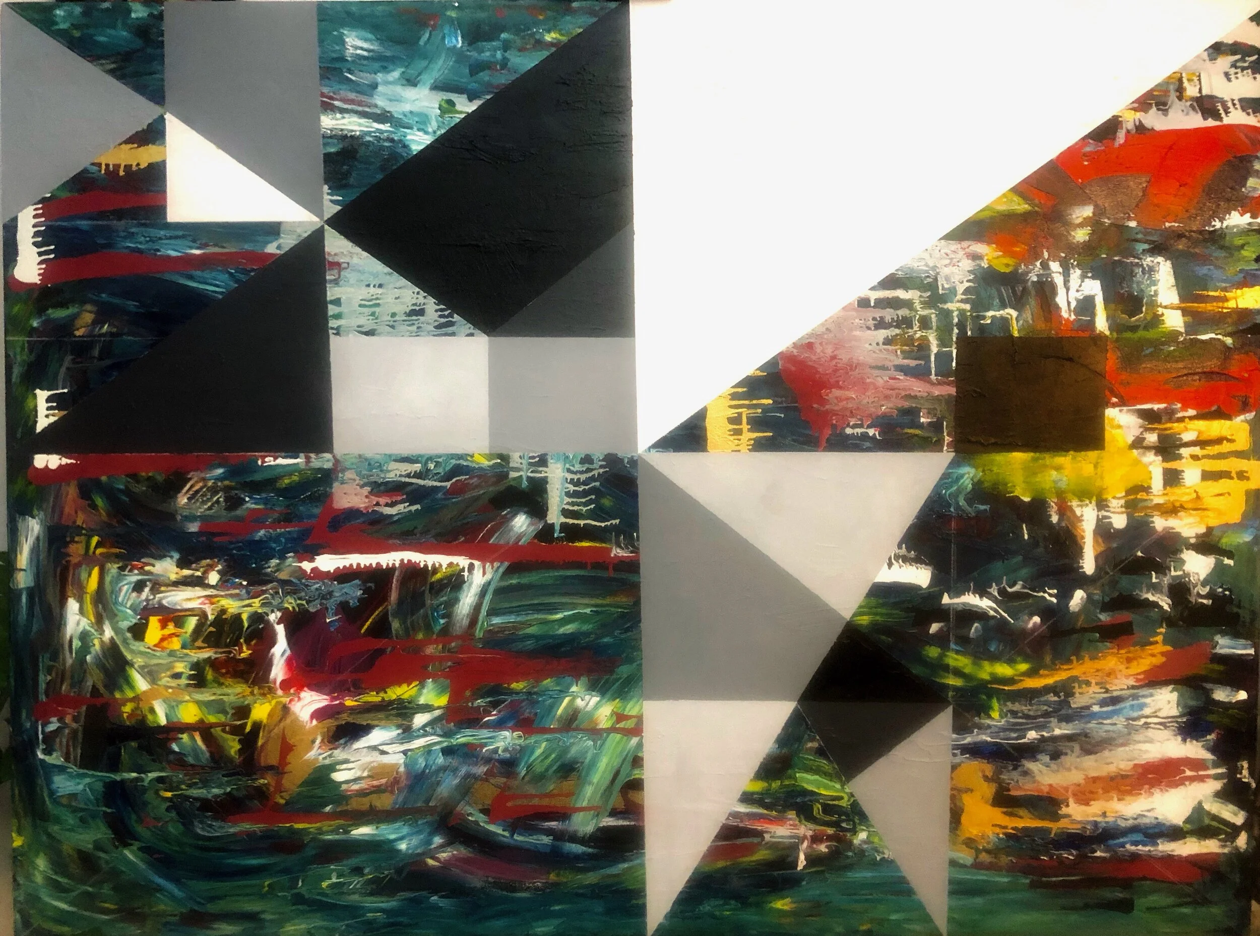 Retomé una pintura que hacen años mi madre había hecho, y como no tenía un canvas nuevo a mi alcance, intervine – con su autorización- sobre el mismo. Este ejercicio a servido como un puente de conversación, reflexión, y apreciación de la vida y de nuestra compañía.