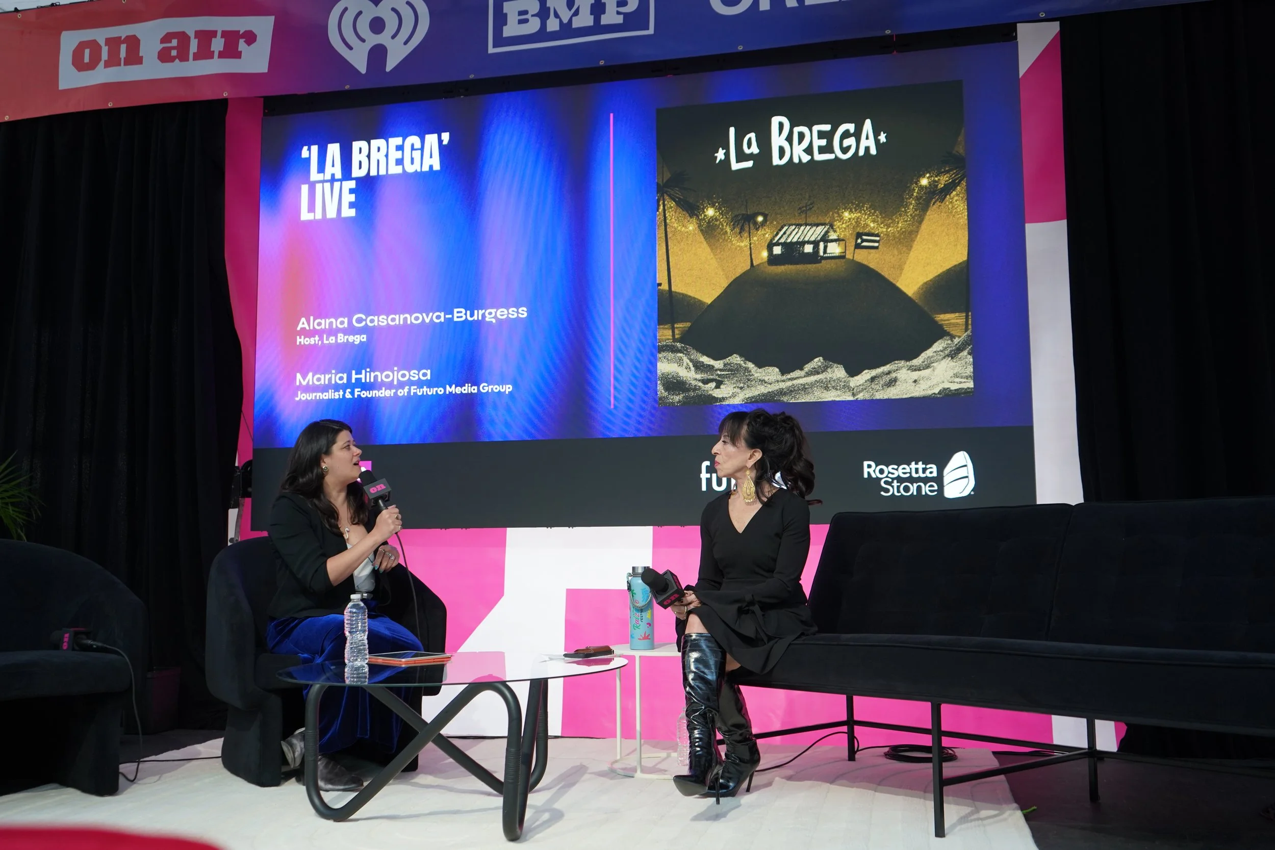 La conversación fue moderada por Alana Casanova, productora y voz detrás de La Brega, junto a María Hinojosa, periodista y fundadora de Futuro Media, organización independiente sin fines de lucro que cumple 15 años amplificando historias latinas en Estados Unidos. Futuro Media, comprometido con la excelencia narrativa y la justicia informativa, decidió acoger el proyecto cuando La Brega enfrentaba la posibilidad de no continuar. “Yo era una oyente”, afirmó María.