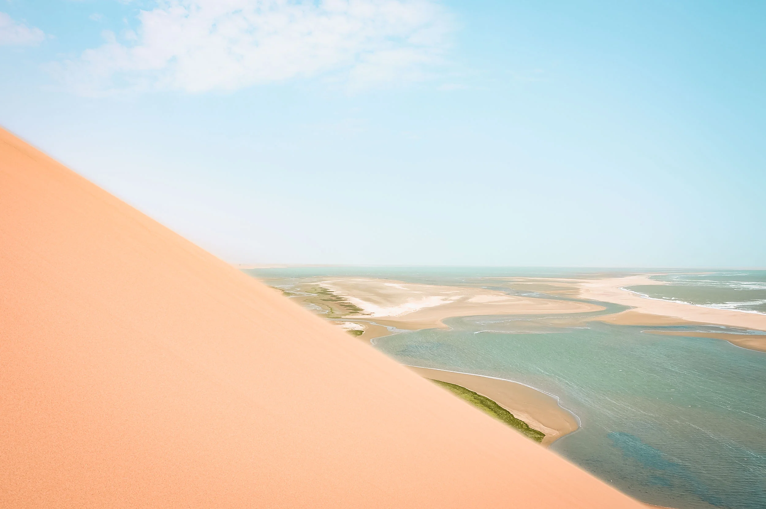 Namibia queda arribita de Sur África. El país, sí, África es un continente, no un país. Es el segundo país menos poblado del mundo, y es bien desértico :) La temperara cerca los 40 a 60 grados Fahrenheit, ¿quién diría? Yo no sabía nada de esto cuando me tiré con una determinación ingenua de ver el desierto. Viajé seis horas en un autobús 🚌 lleno de 12 locales, pero con espacio para seis. Llegué a Swakopmun por la noche, sin saber que era mi parada, sin un hotel, sin un contacto. Sol, en un estacionamiento vacío, bajo el tenue del único poste de luz, y cuando se acerca un auto, me digo "estaba vez sí la cague". En la mañana todo fue diferente.
