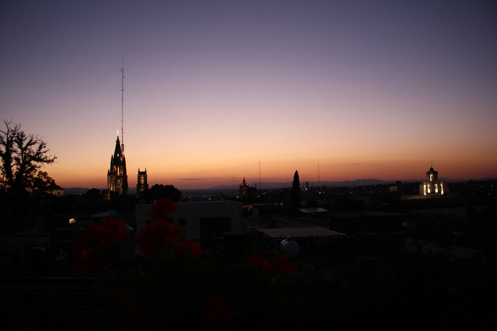 Ver el atardecer en uno de sus rooftop es un “must” en San Miguel. En las tardes, varias terrazas se llenan de visitantes que quieren ver la espectacular caída del sol. Intentamos varias terrazas pero todas estaban abarrotadas. Por poco oscurece, pero después de varias vueltas, encontramos una linda terraza donde nos sentamos a apreciar el paisaje, solo eso. Acompañado de un mezcal y una cerveza, claro. Y en esos momentos es que agradeces la sencillez y reconoces la maravilla de la naturaleza; del ser y estar. ¡Salud!